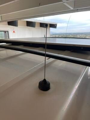 Finally, we come to antennas. On my house, I'm using a plain vanilla dual-band Diamond (or Comet?) fiberglass gain antenna. Its VSWR at 433 MHz is acceptable, but could be better. The 2 m side is running my 2 m legacy APRS station, and the 70 cm side is running a QRP-Labs LightGateway Plus (Solar) 1.0. The range is pretty impressive, even with the less than stellar VSWR.